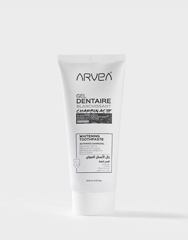 This whitening toothpaste combines a gentle formula with effective active ingredients to promote optimal oral hygiene. Enriched with activated charcoal, it helps reduce surface stains and revive the natural whiteness of teeth. Thanks to its remineralizing agents and its fluoride dosage of 1360 ppm (0.30 % sodium fluoride), it helps strengthen enamel, increase its resistance and limit the formation of dental plaque, thus reducing the risk of cavities. In addition, the combination of mint and clove essential oils provides intense and lasting freshness, to maintain a feeling of cleaner breath throughout the day.